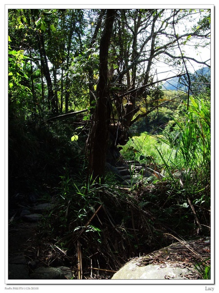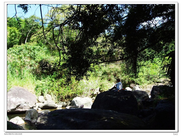 還有一個好處:累了找顆石頭坐坐休息,瞧!那人超愜意哩