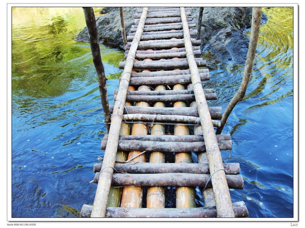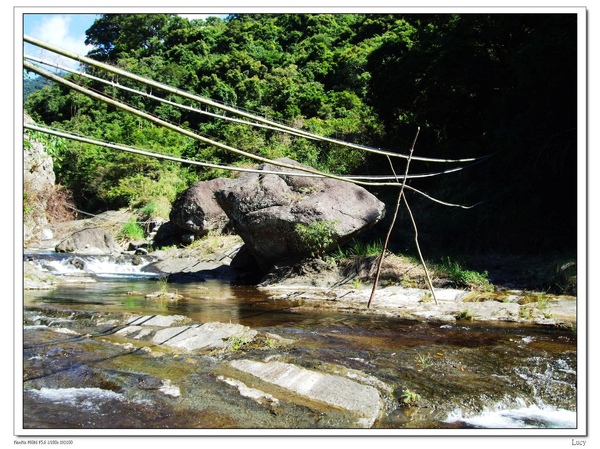 吊索?(恩~很有創意,人的重量會讓竿子斷兩半,一起和溪水相親相愛)