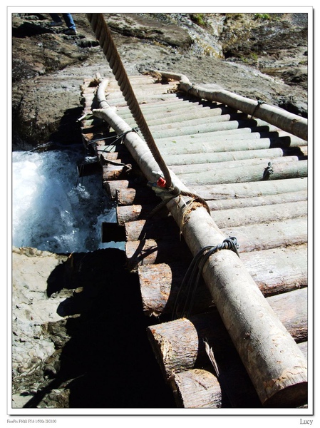 看那流水洶湧滔滔向下,一旦溪水暴漲,那這座橋不就沖走,可惜了壓~